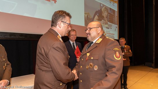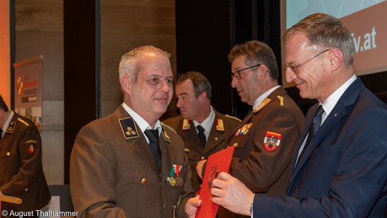 Die Florianmedaille des OÖ. Landesfeuerwehrverbandes 3. Stufe wurde an HAW Thomas Manahl und an E-OAW Rudolf Lasinger verliehen. Bürgermeister Peter Zieher wurde mit der Florian Ehrenmedaille in Bronze ausgezeichnet.