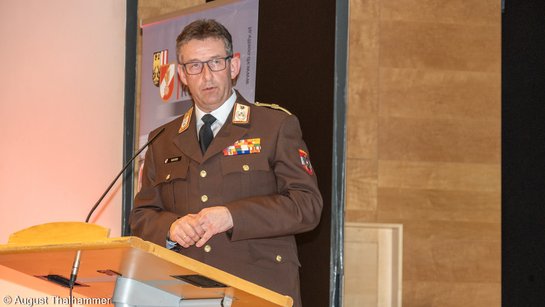 Bezirksfeuerwehrkommandant Wolfgang Hufnagl gab einen Rückblick über das Jahr 2023 ab. Es wurden 1362 Brandeinsätze und 4667 Technische Einsätze von den Feuerwehren des Bezirkes abgearbeitet.
