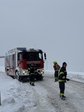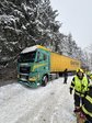 Trotz angelegter Ketten rutschte ein Sattelzug auf der schneeglatten Fahrbahn zur Seite.