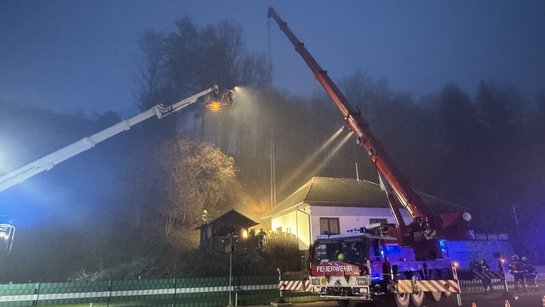 Beim Eintreffen stellte sich heraus, dass sich ein ca. 4 Tonnen schwerer Wurzelstock aus einem Hang gelöst und im Anschluss die Mauer des Schlafzimmers eines Wohnhauses durchschlagen hatte.