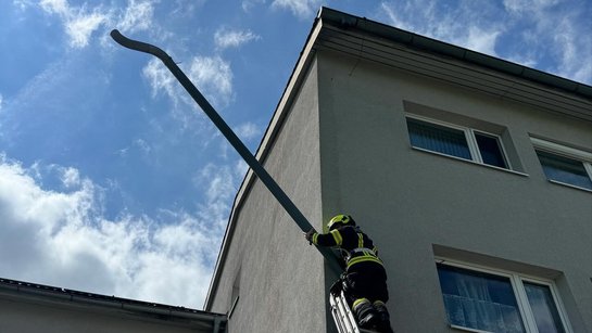Eine Dachrinne drohte abzustürzen - die Feuerwehr bannte die Gefahr